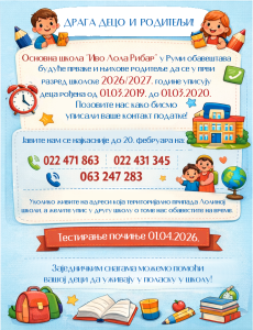 ☎️ Молимо родитеље који желе да упишу своје дете у ОШ „Иво Лола Рибар“ у Руми да нам се јаве најкасније до 20. фебруара на телефонске бројеве школе 022/471-863, 022/431-345 или број психолога школе 063/247-283. ☎️