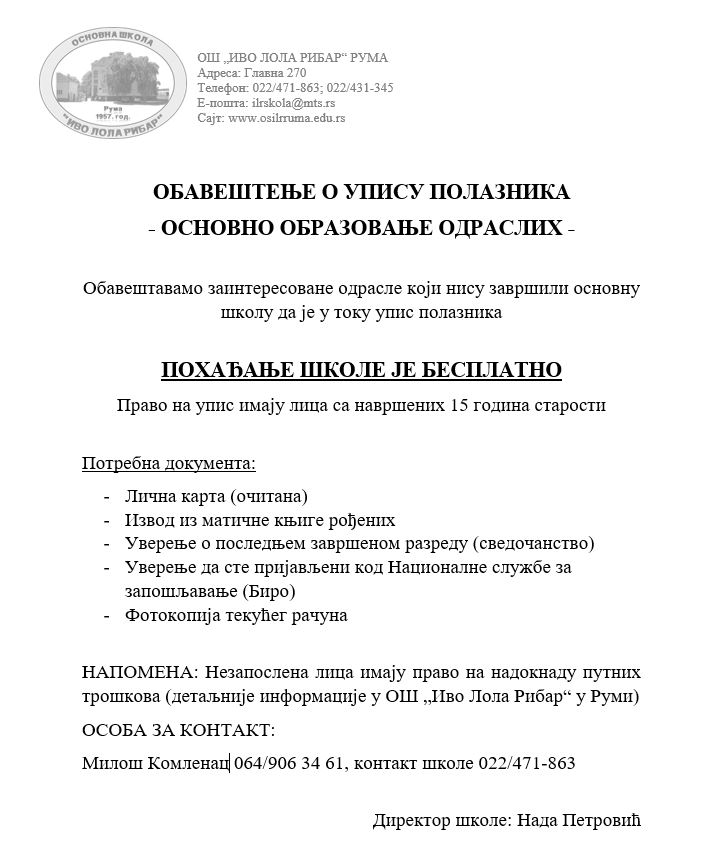 Објављено 1. јун 2018. ОБАВЕШТЕЊЕ О УПИСУ ПОЛАЗНИКА ООО Кретање чланка Екскурзија V разреда, мај 2018.Екскурзија I и II разреда, мај 2018.