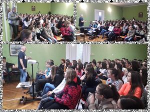 Јуче је у Основној школи „Змај Јова Јовановић“ у Руми Игор Јурић, оснивач Фондације „Тијана Јурић“, одржао предавање коме су присуствовали чланови Ученичког парламента и ученици петог и шестог разреда наше школе у пратњи библиотекарке Марине Јездић. Теме предавања биле су: безбедност деце на интернету, злоупотреба интернета и трговина људима.