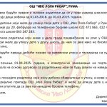 Молимо родитеље који желе да упишу своје дете у ОШ „Иво Лола Рибар“ у Руми да нам се јаве најкасније до 20. фебруара на телефонске бројеве школе 022 471 863, 022 431 345 или број психолога школе 063 247 283.